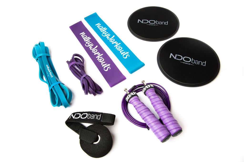 The perfect way to get a NathyWorkout anywhere. Your very own Team Nathy full body kit that goes where you go and perfectly travels with you in your gym bag, suitcase, or handbag. And did we mention the dope design?!